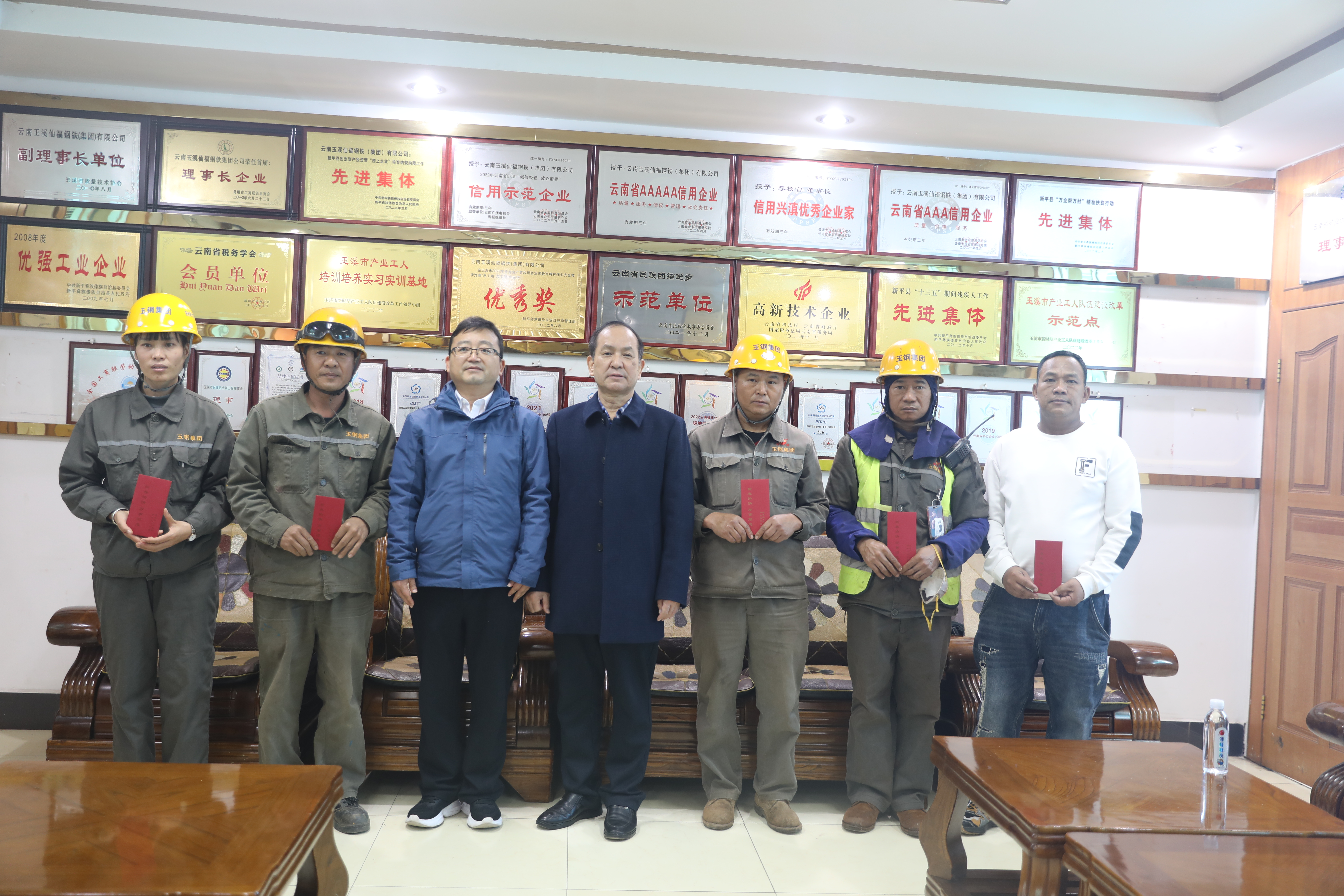 2023年12月28日,新平縣總工會王金生副主席一行到仙福鋼鐵集團開展“寒冬送暖”慰問活動,仙福鋼鐵集團工會陳彩惠主席、女工委羅婷主任陪同參加活動。
